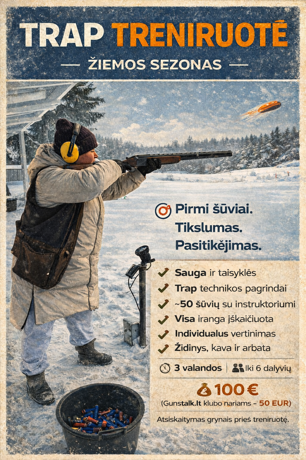 💰 Kaina – 100 EUR(Gunstalk.lt klubo nariams – 50 EUR) 💳 Atsiskaitymas grynaisiais prieš treniruotę.📍 Vietoje, prieš pradedant užsiėmimą. Trap šaudymas – tai viena populiariausių stendinio šaudymo disciplinų, kur šaulys…